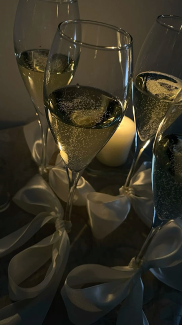 -по этикету нельзя заполнять бокал шампанским полностью, рекомендуется оставить два сантиметра до края;